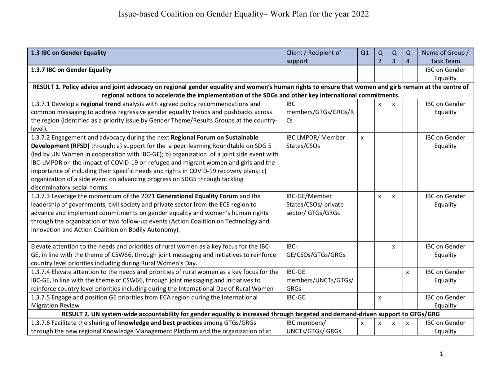 2022 Workplan of the IBC on Gender Equality