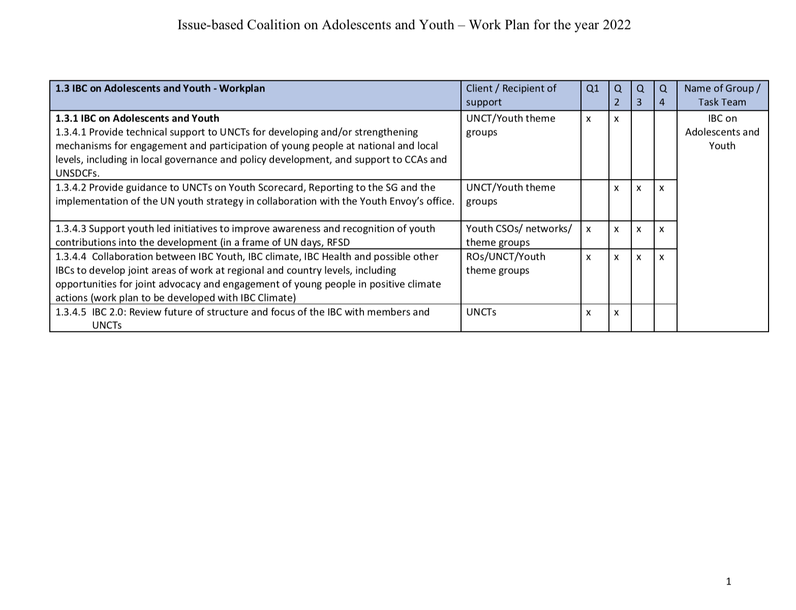 2022 Workplan of the IBC on Adolescents and Youth