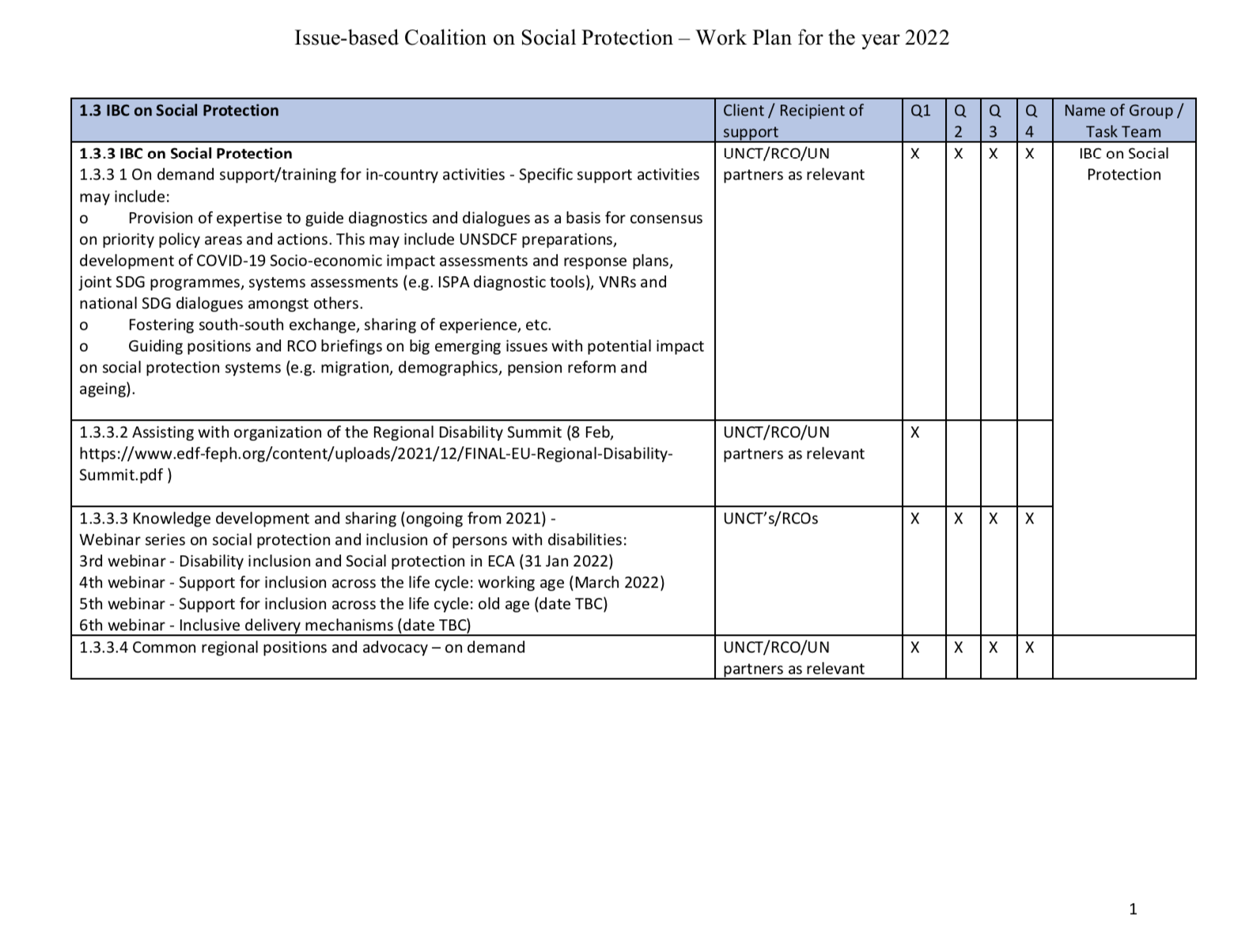 2022 Workplan of the IBC on Social Protection